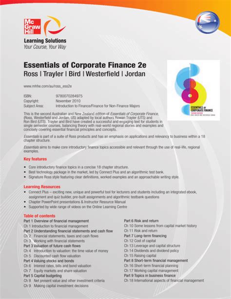 Download online Essentials of Corporate Finance 2e PDF BookBoon